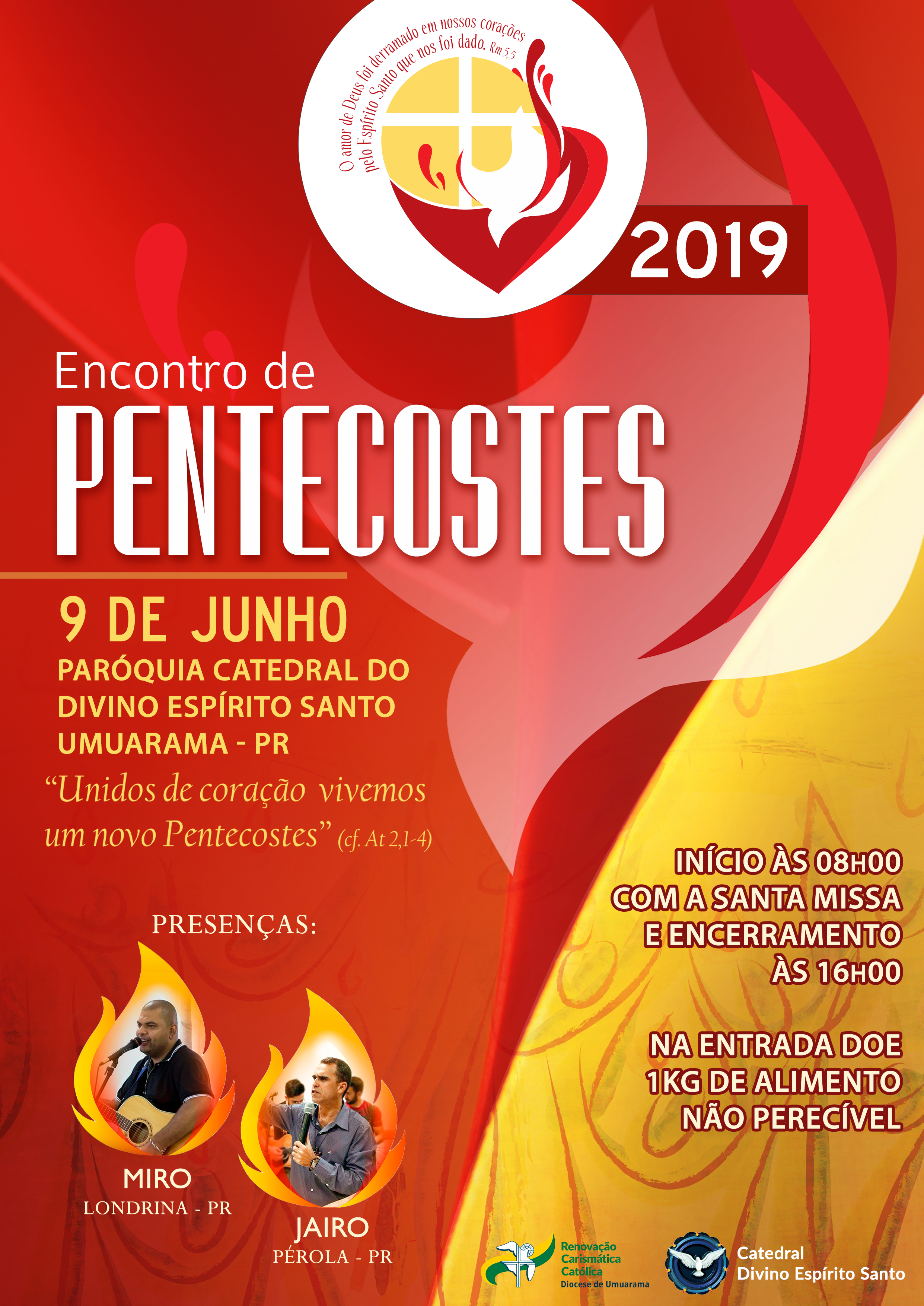 Com tema “Unidos de coração vivemos um novo Pentecostes” (cf. At 2,1-4), a Paróquia Catedral do Divino Espírito Santo e a Renovação Carismática Católica da Diocese de Umuarama realizarão o ENCONTRO DE PENTECOSTES. Está sendo preparando uma grande celebração para comemorar esse dia que é um marco para toda a igreja católica.